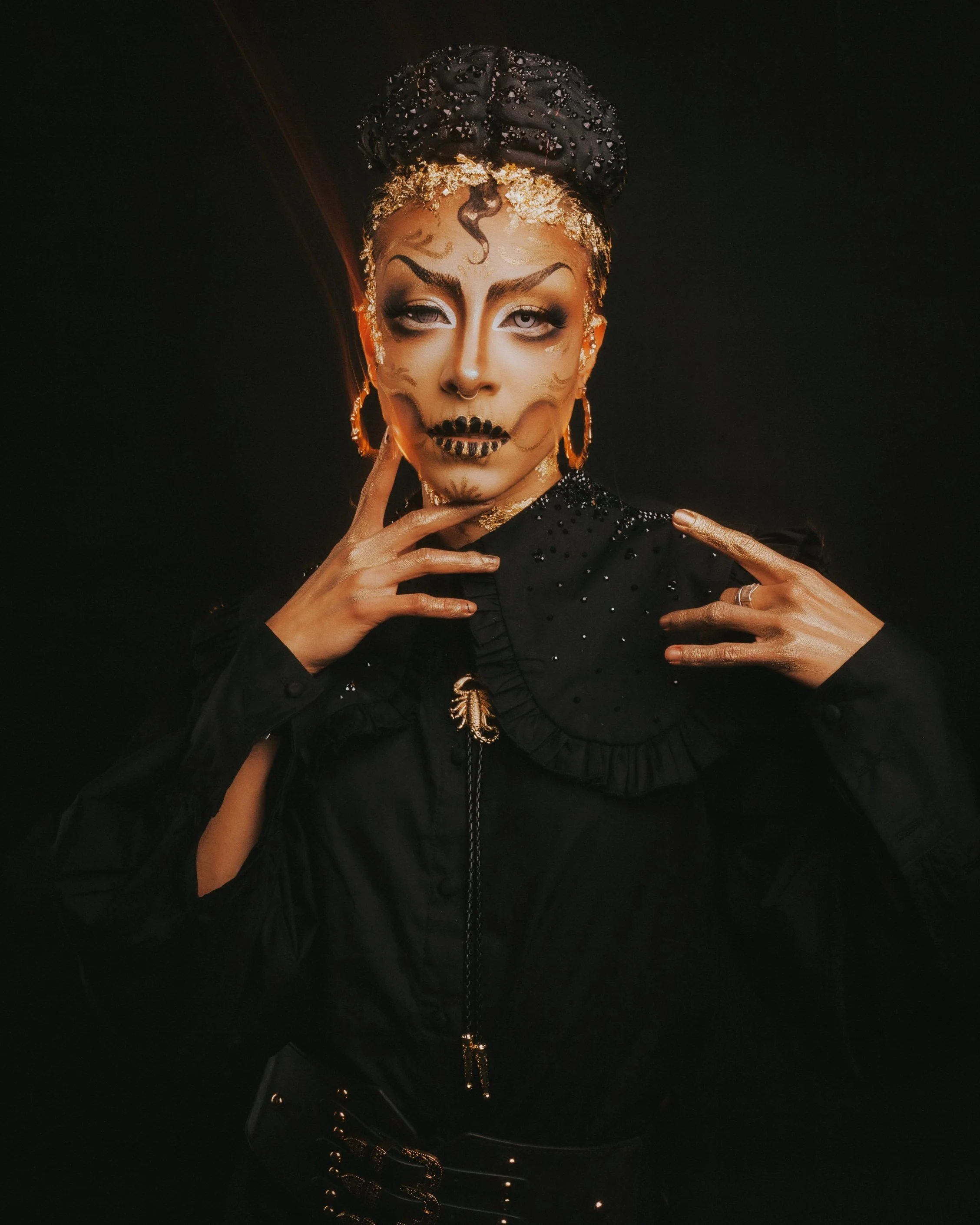 Sofia Camacho, also known as Xana Whoria (they/them) is a NYC-based tattoo artist, drag performer, and runner. They are originally from Mexico City and often incorporate cultural motifs throughout their designs and performances.